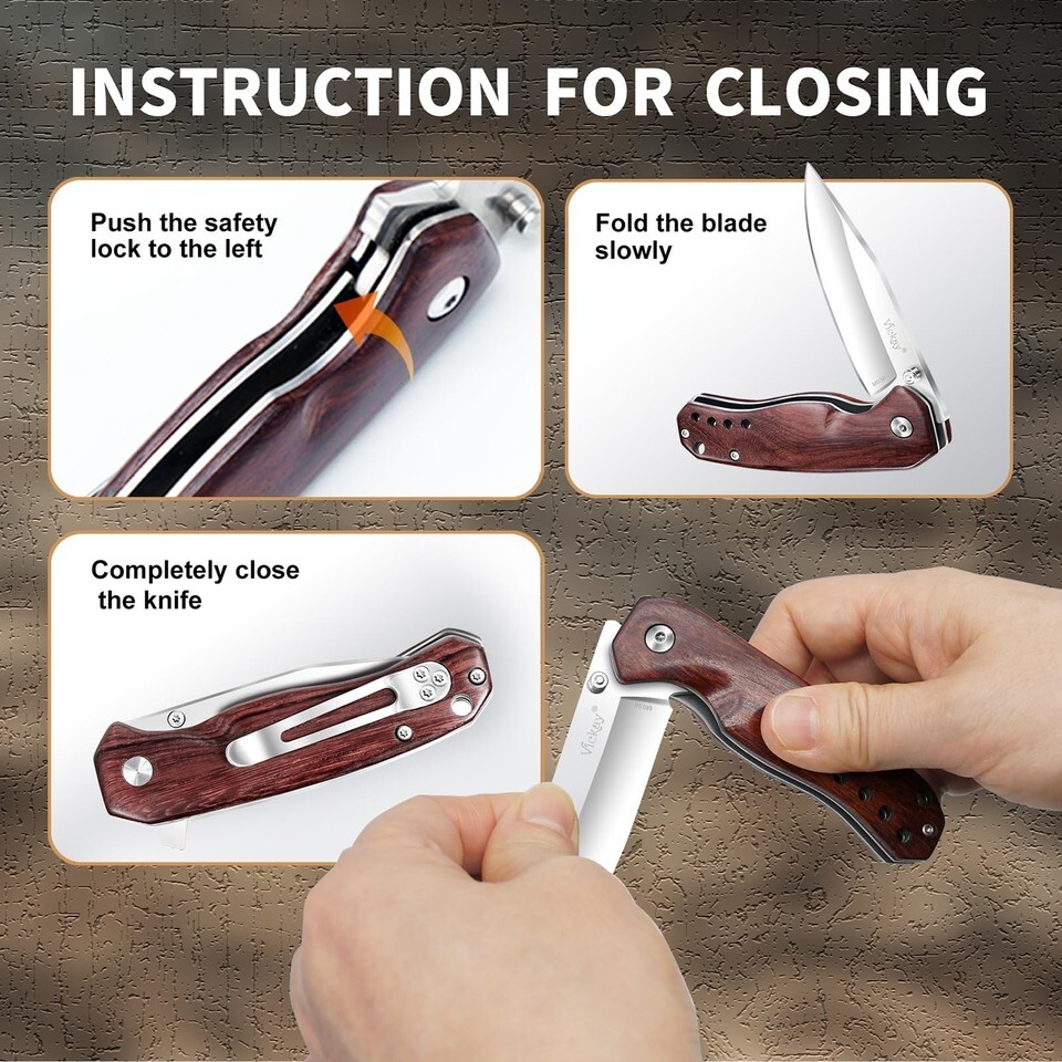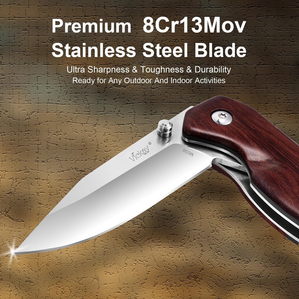 - Pocket Knife Folding 2.76" 8Cr13MoV Steel Blade Wood Handle EDC Outdoor