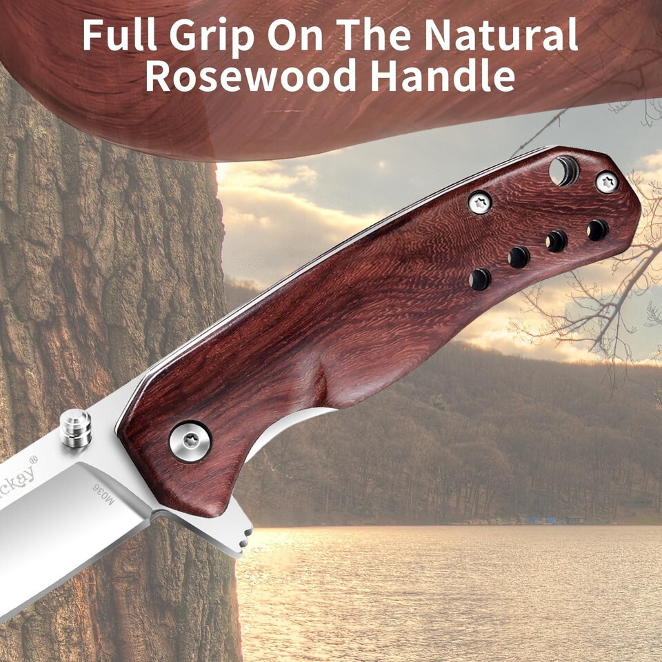 EXQUISITE ERGONOMICS HANDLE--Made of high-quality natural rosewood which brings you comfortable and perfect anti-slip grip, and the wood handle with excellent workmanship provides exquisite look and upscale texture, so this small pocket knife is the best gift for men and women