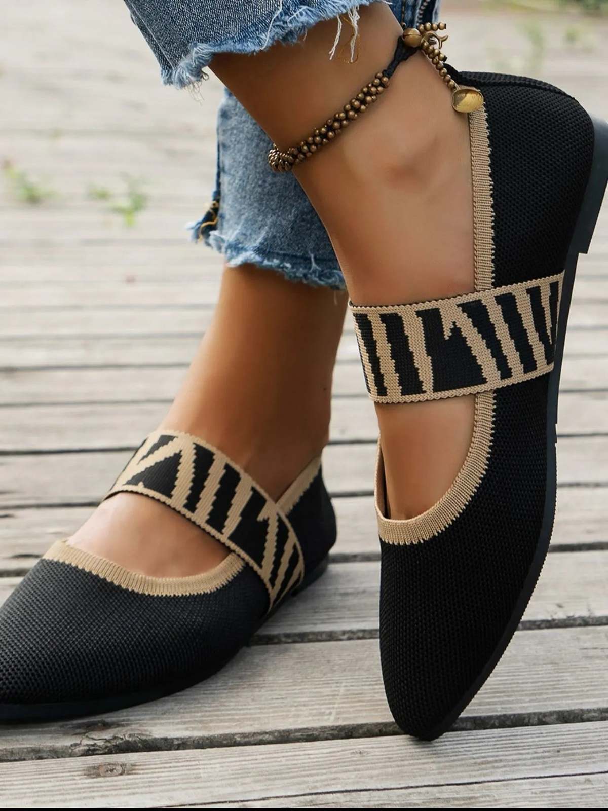 - Point Toe Flats Mesh Gingham Strap Loafers