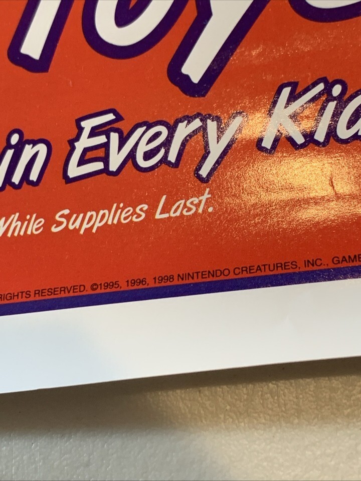 - Pokémon Burger King Toys Poster 1999 Promotional, 22"x32" Nintendo