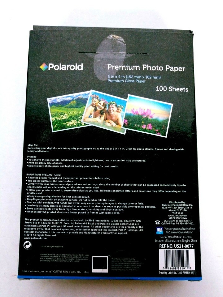- Polaroid Premium Photo Paper 6 X 4 Inch Premium Gloss Paper 100 Sheets