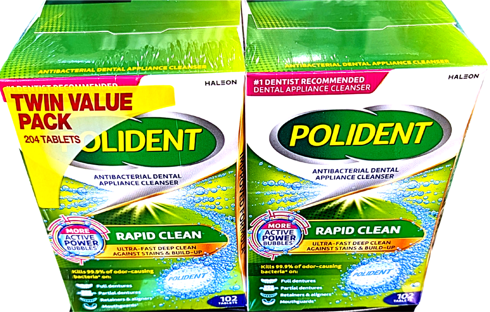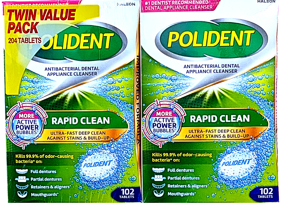 - Polident Rapid Clean Dental Cleanser Tablets 2 x 102 Count EXP 04/2028