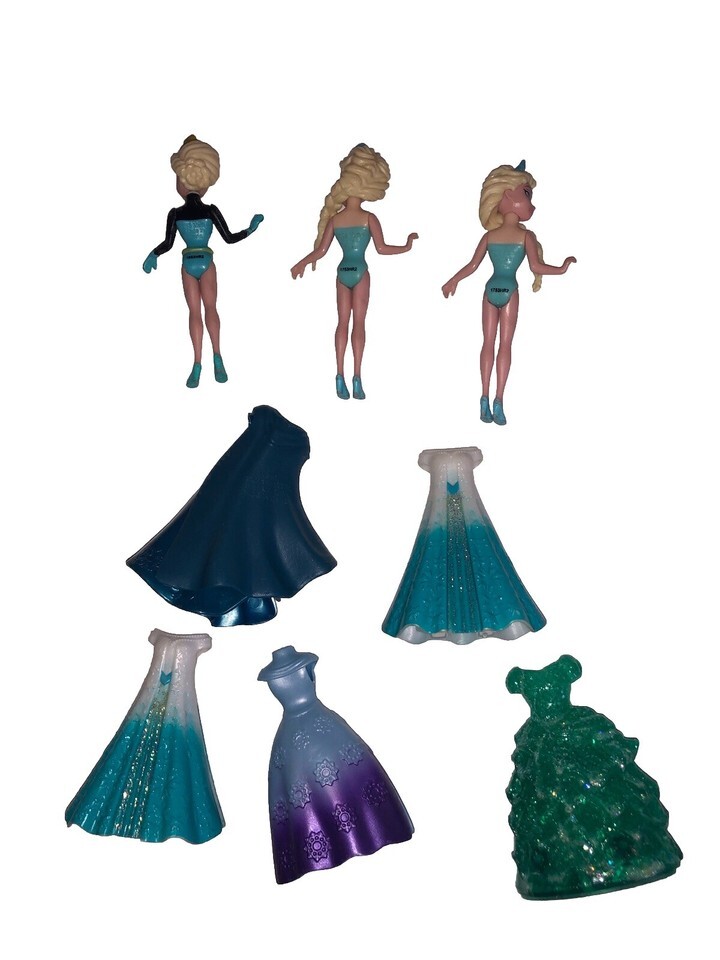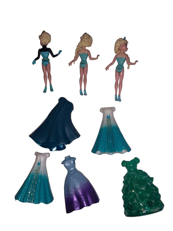 - Polly Pocket Disney Princess MagiClip Elsa Frozen Set Lot Of 3 Dolls 5 Dresses