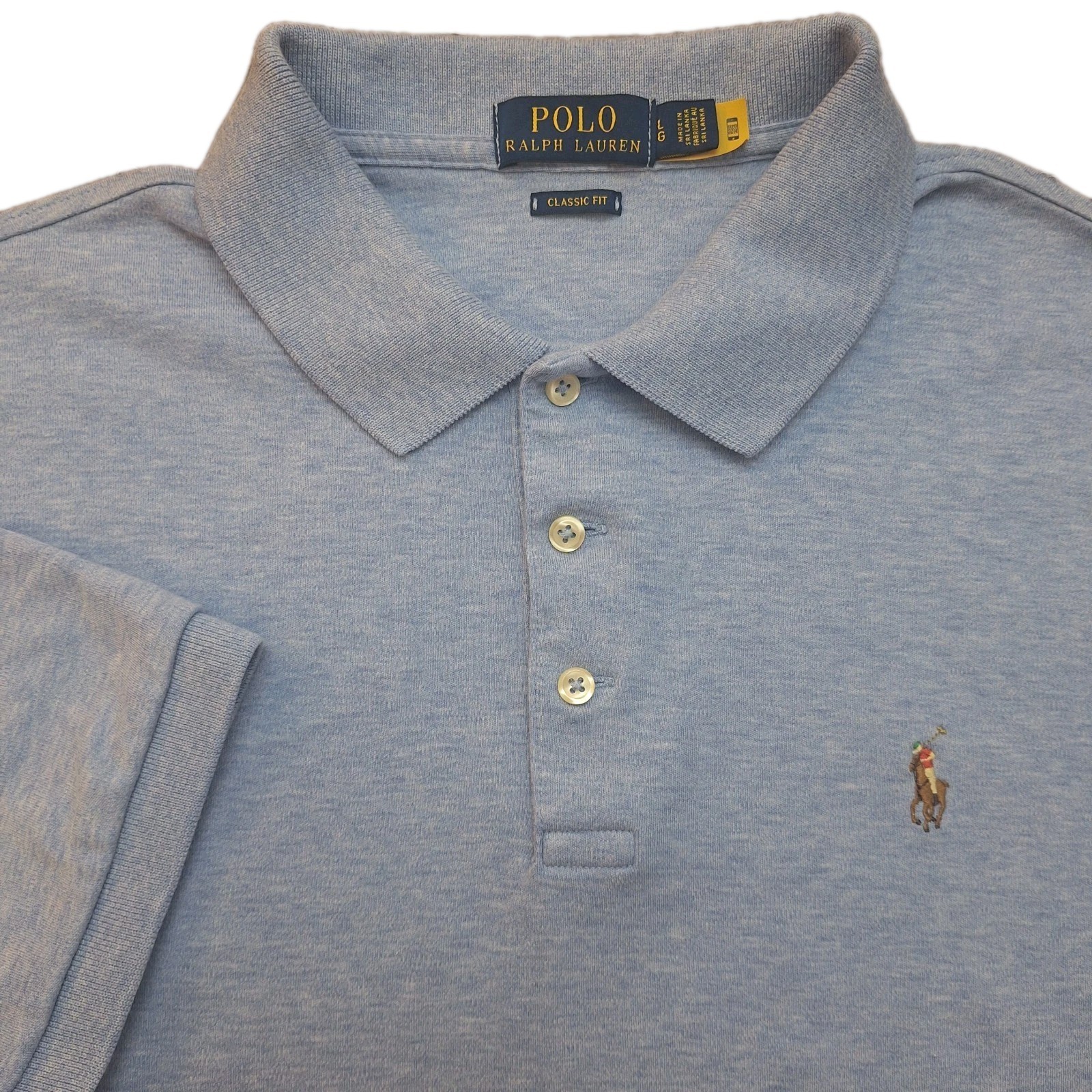 - Polo Ralph Lauren Classic Fit Cotton Polo Golf Shirt Lt Blue Heather Sz Large