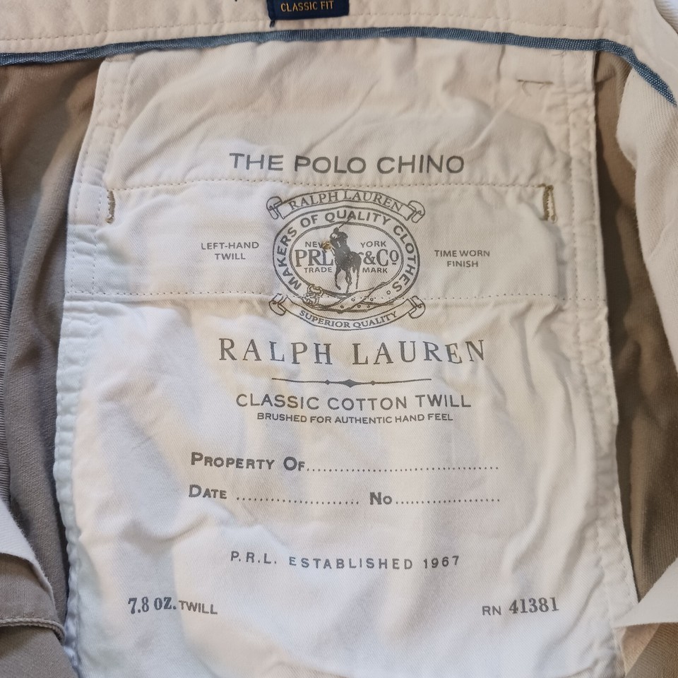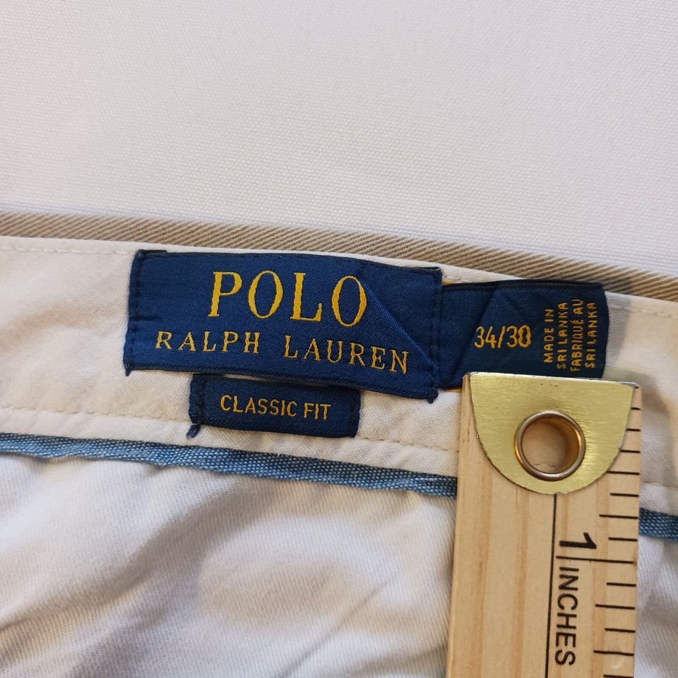 - Polo Ralph Lauren Classic Fit Men's Tan Khaki Cotton Pants Size 34/30