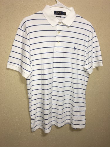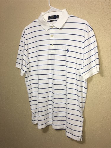 - Polo Ralph Lauren Men’s Polo Shirt Custom Slim Fit WHITE BLUE STRIPE SZ L NEW