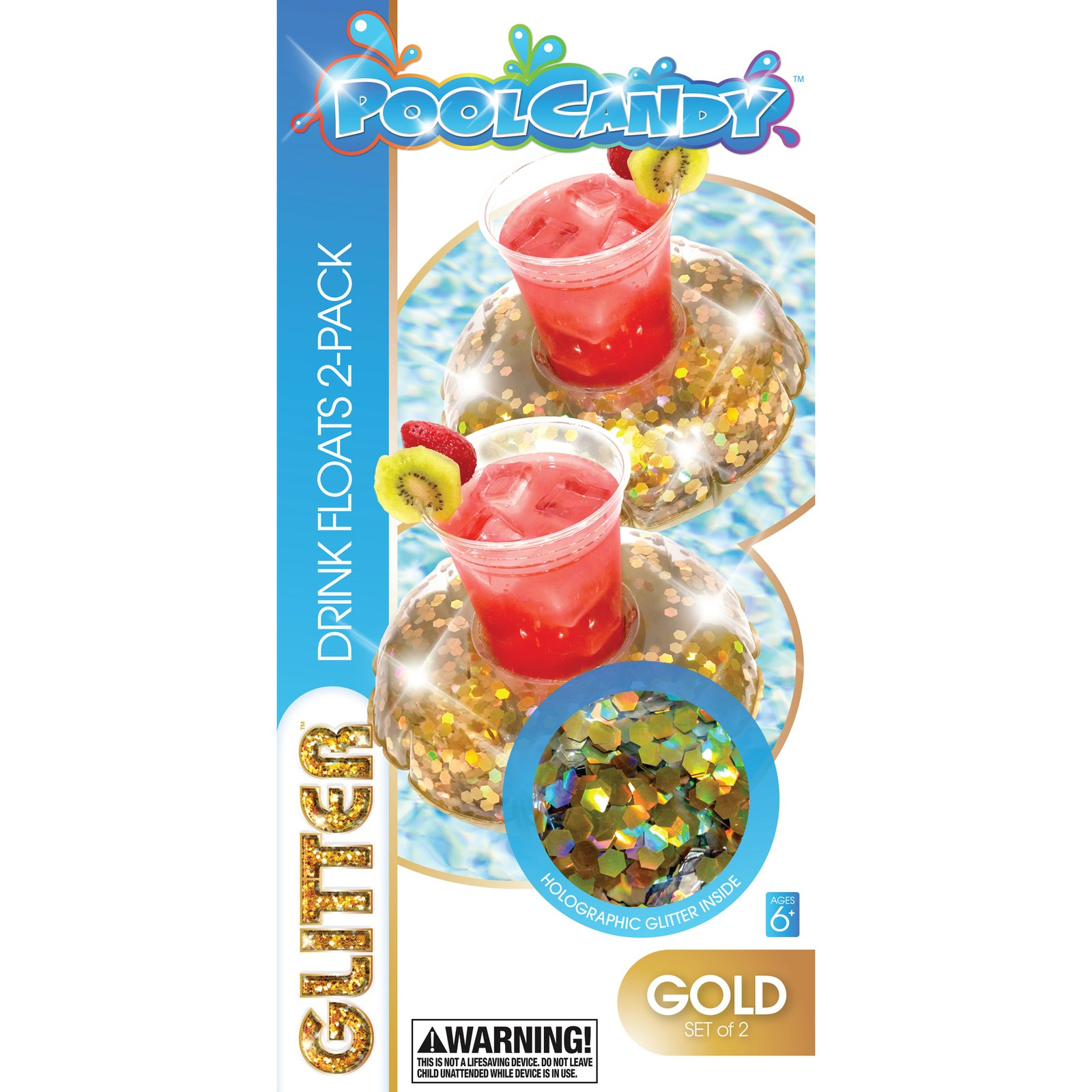- Pool Candy Holographic Glitter Inflatable Drink Floats in Gold (Set of 2)