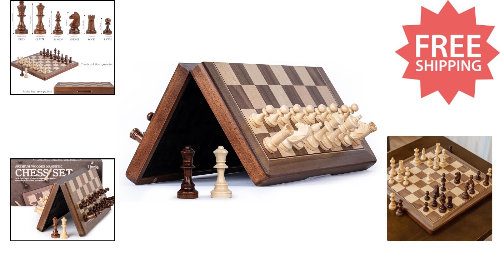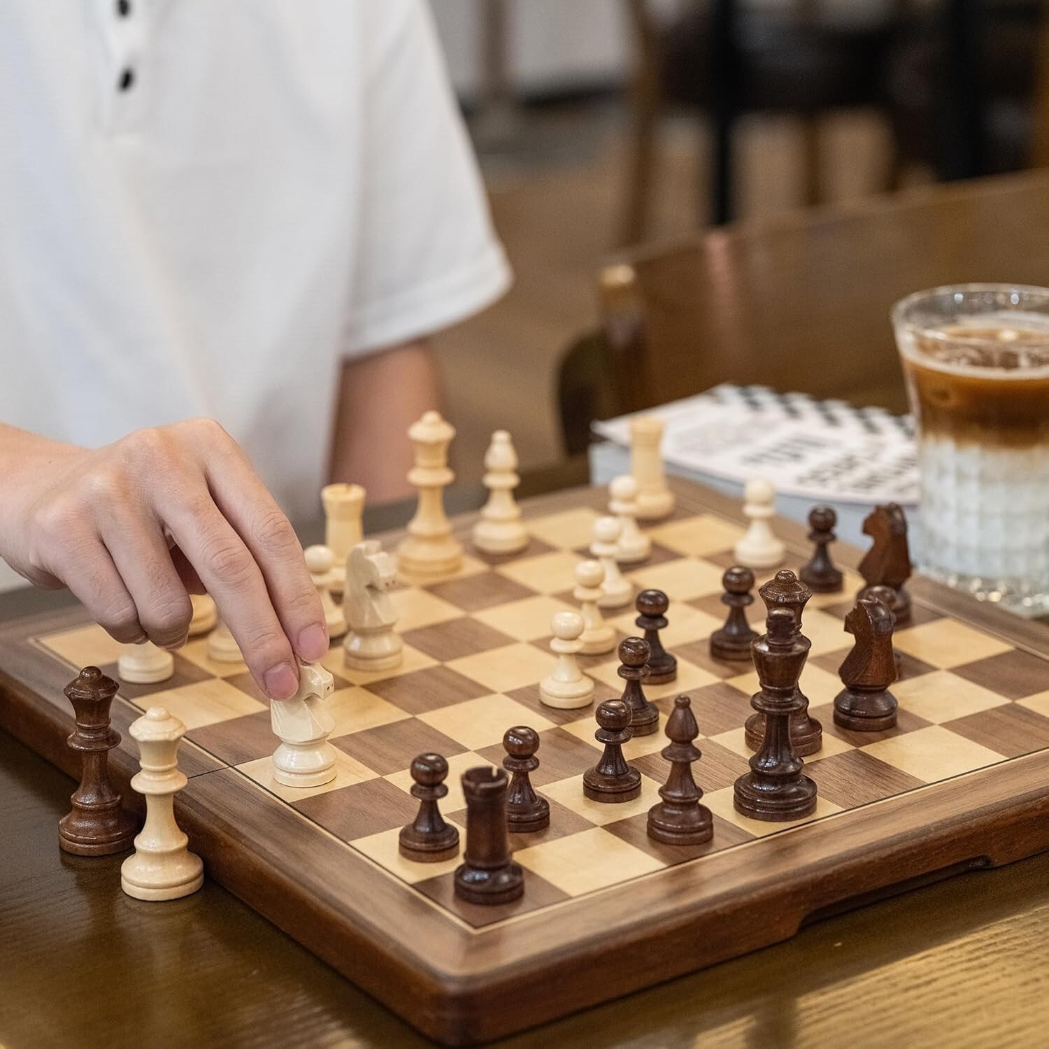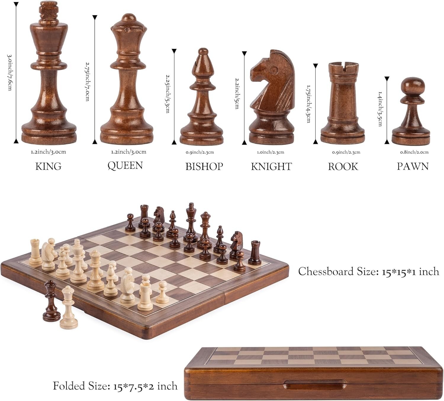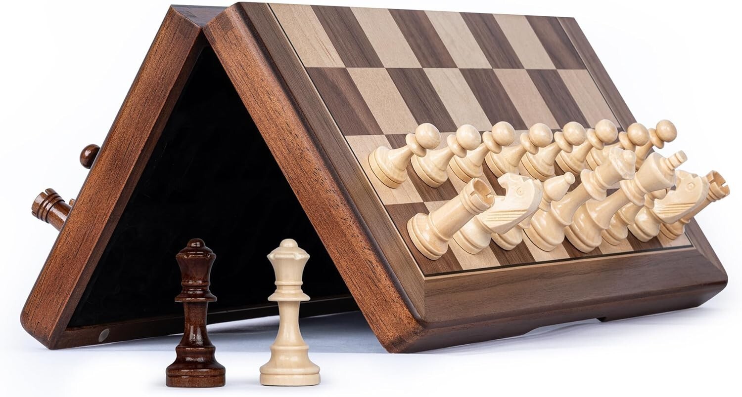 - Portable 15 Inch Magnetic Chess Set – Sophisticated Wood Craft with Extra Queens