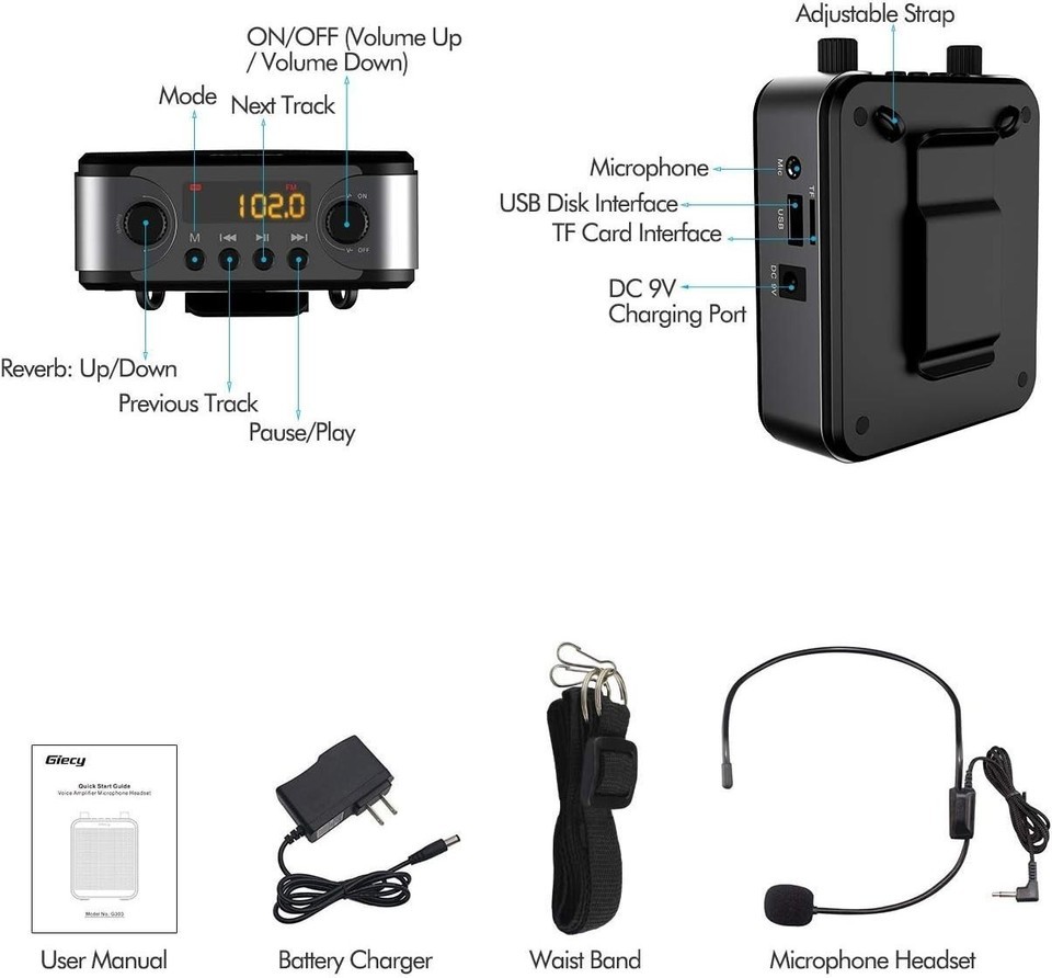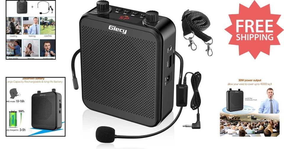 Discover the Giecy Voice Amplifier ? your ultimate audio companion for powerful, clear sound wherever you go. Equipped with a 30W output, it covers up to 20,000 sq.ft (1000 ?), perfect for large gatherings, outdoor events, or classrooms. This versatile device doubles as a portable Bluetooth speaker, streaming your favorite music wirelessly from up to 33 feet away. Featuring a rechargeable 2800mAh battery, enjoy 12-15 hours of amplification or 8 hours of music playback per charge. Included with a headset microphone, it?s ideal for teachers, coaches, and tour guides addressing sizable groups. Support for TF cards, USB drives, and wired connections offers seamless music options. Elevate your voice and entertainment with the Giecy Voice Amplifier. To ensure fast and reliable delivery, we work with multiple fulfillment partners and suppliers. Depending on availability and location, your order may ship from different warehouses or arrive in packaging that varies from item to item. Tracking details are typically provided shortly after shipment, and customer satisfaction remains our top priority. Please note that due to carrier policies and regional regulations, certain items may not be eligible for delivery to specific states or territories.