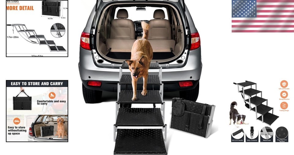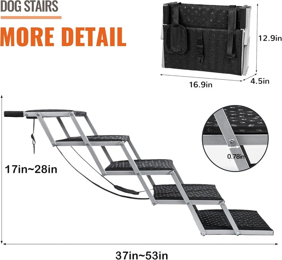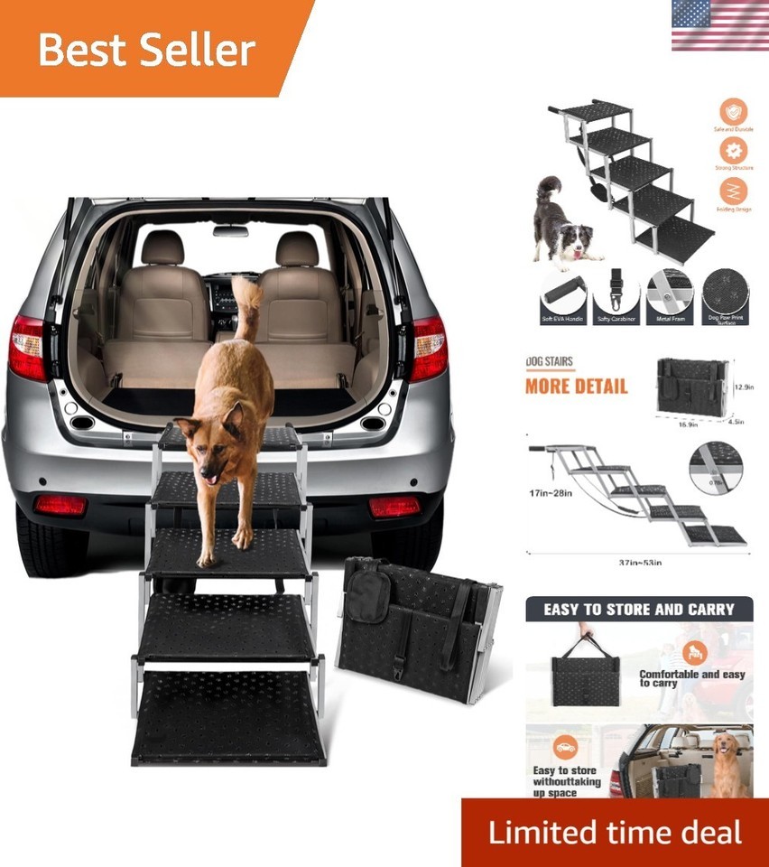 - Portable Dog Ramp with Adjustable Height for Cars - 5 Steps, Lightweight Design