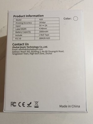 - Portable Label Maker N20 Thermal Bluetooth Printer 203DPI w/ 2x2 Label Roll NEW