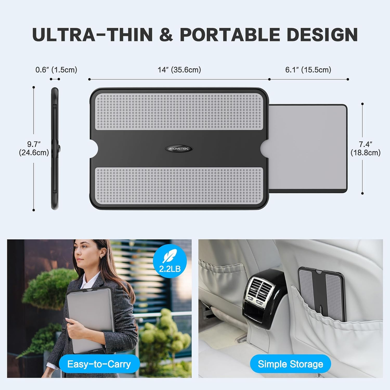 EASY to Carry and Store - With an ergonomic and simplistic design, the lap desk is portable to store in a backpack. Only 15" in size, 2.2 lb of weight and with slim 0.6 inch thickness, it is ready to be easily carried around.