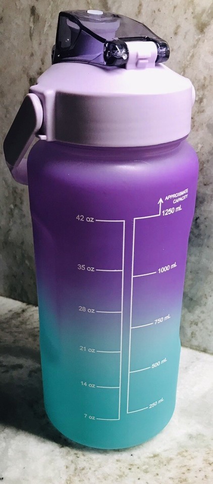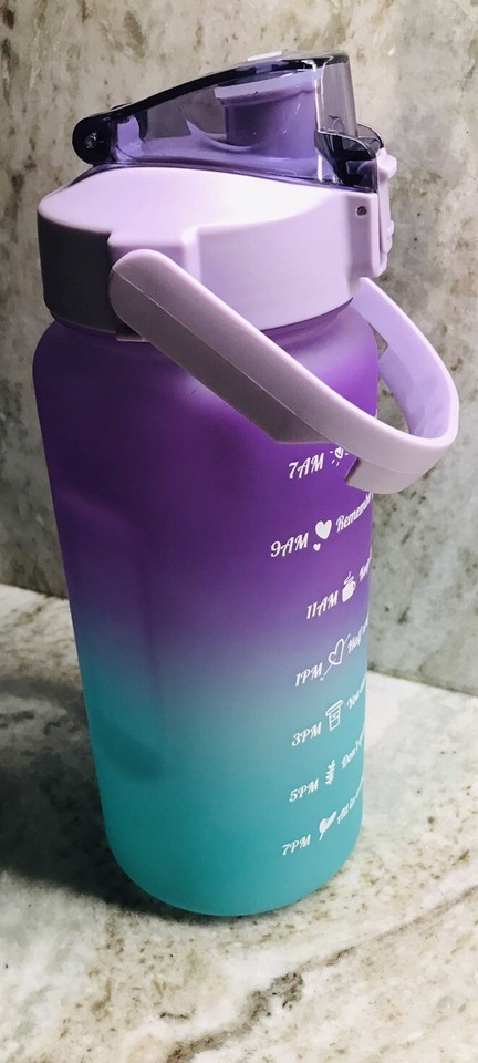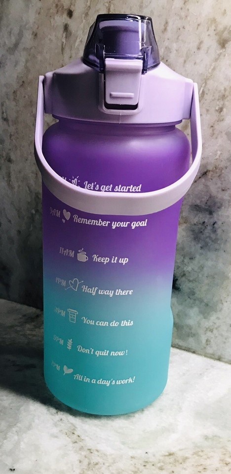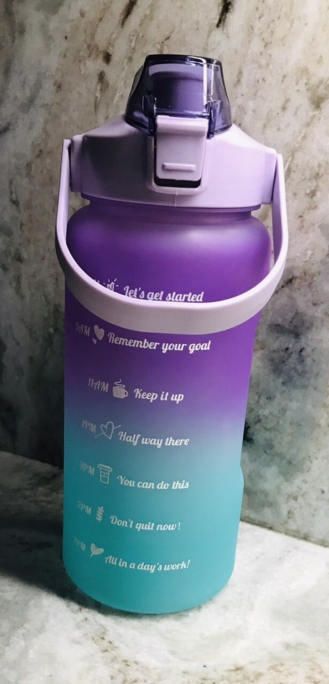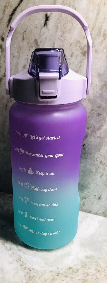 - Portable Motivational Water Bottle W/ Time Marker & Lanyard/Green/Purple1250ml