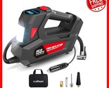 - Portable Tire Inflator with LED Light and Digital Gauge for Easy Car Inflation