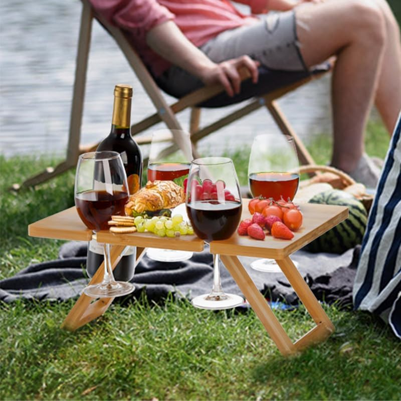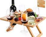 - Portable Wine Picnic Table with 5 Wine Glasses Holder, Foldable Champagne Picnic