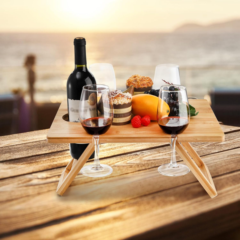 Handmade from natural bamboo, the modern wine table is sturdy and well-made, non-odor, non-toxic, both durable and lightweight, making it an essential accessory for any outdoor enthusiast.