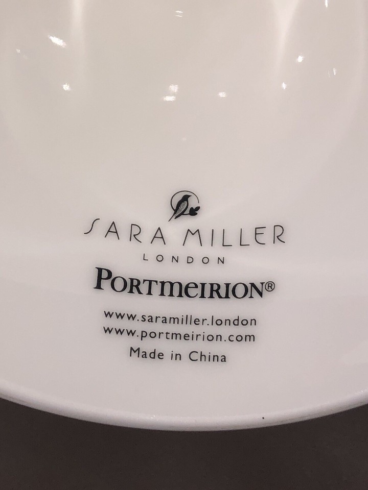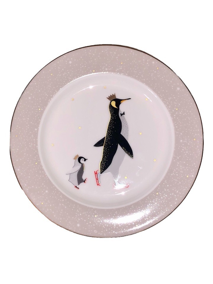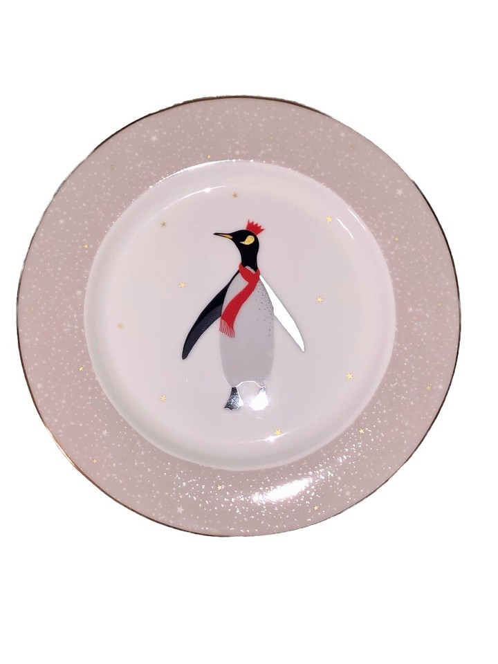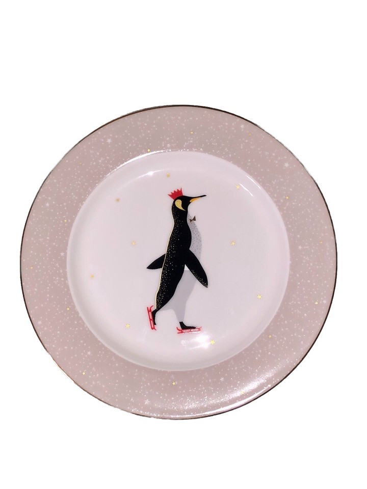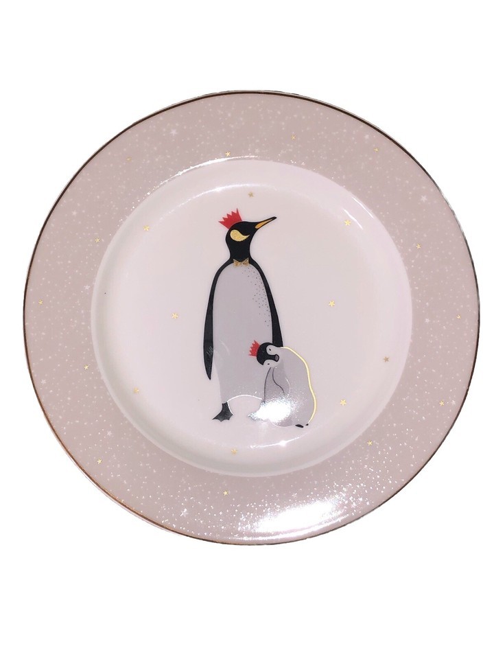 - Portmeirion Sara Miller London Penguins Gray Footed Cake Stand 4 Dessert Plates