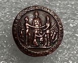 Oval lapel pin with stud fastener on the reverse. Measures 5/8 inches in diameter. G.A.R. logo on the obverse with vignette of the figure of Liberty in the center flanked by a Union sailor and soldier clasping hands in fraternity. Two children are kneeling in the foreground representing charity and the assurance of protection from their military comrades. Grand Army Of The Republic Veteran, 1861-1866, is in raised letters around the circumference of the pin. The fastening stud on the reverse allowed the Union veteran to proudly wear this pin in the lapel, which depicts a metal pot over a fire suspended by two vertical wood sticks. There is a minor bend on the lower portion of the stud. Minor oxidation is visible due to age.