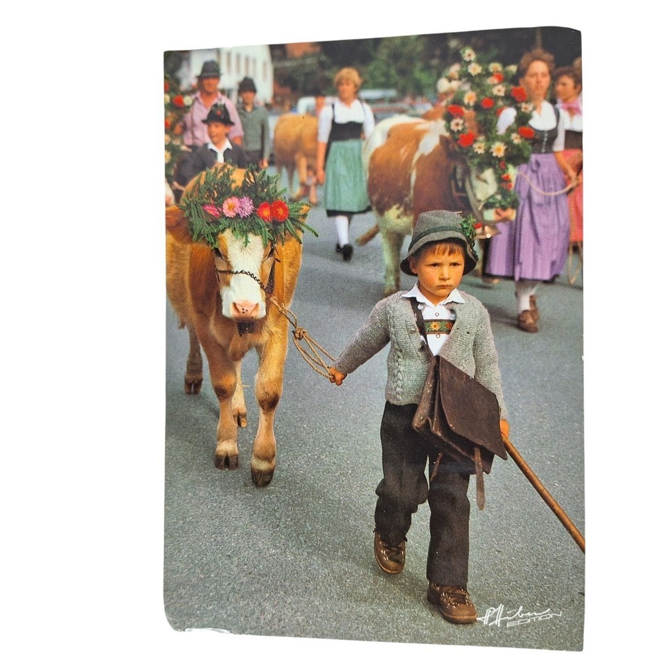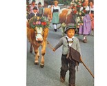 - Postcard Cattle Drive In Bavaria Germany German Boy Leading Cow Chrome Unposted
