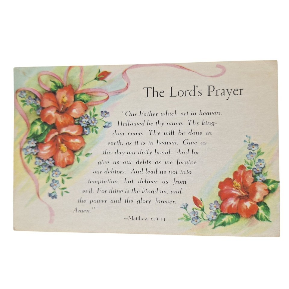 - Postcard The Lord's Prayer Church Religious Flowers Chrome Posted