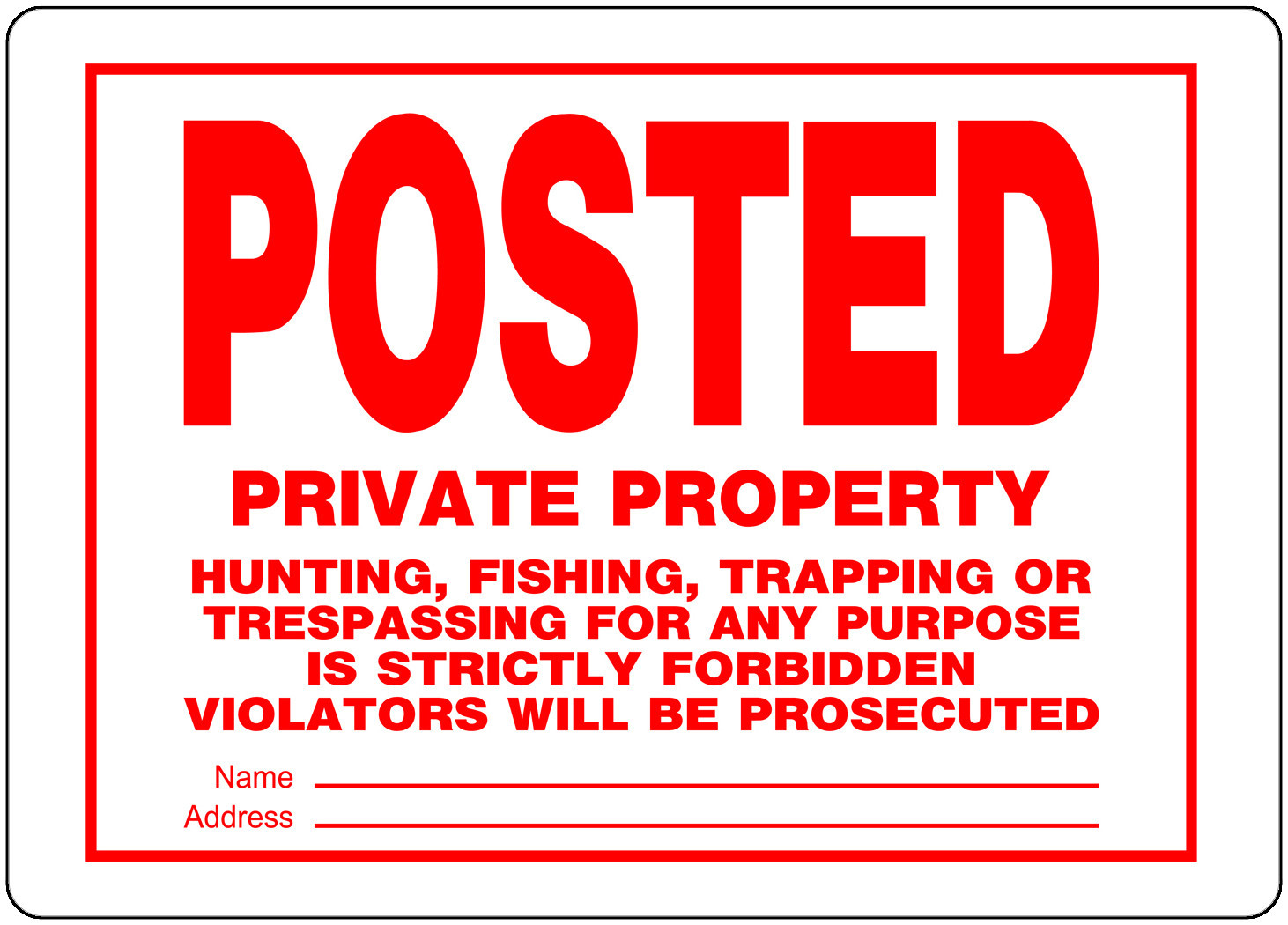- POSTED PRIVATE PROPERTY NO HUNTING FISHING TRESPASSING Metal SIGN HILLMAN 840159