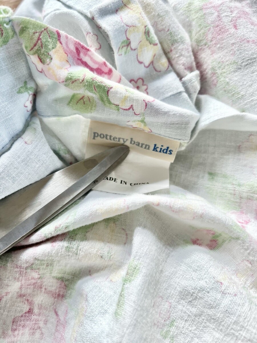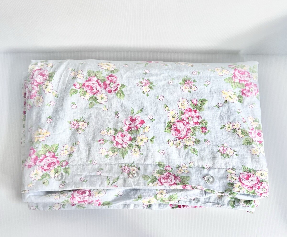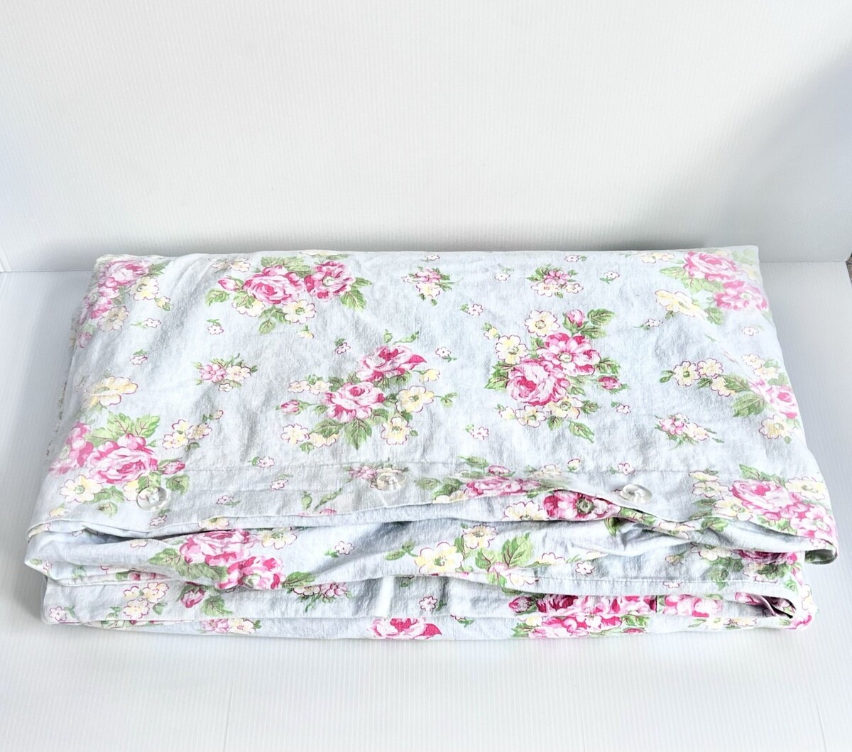 - Pottery Barn Kids Cottage Floral Linen Cotton KING Duvet Comforter Cover Blue