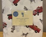 POTTERY BARN KIDS Trucks And Ladders Firetruck Dalmatian Dog QUEEN sheet set NEW