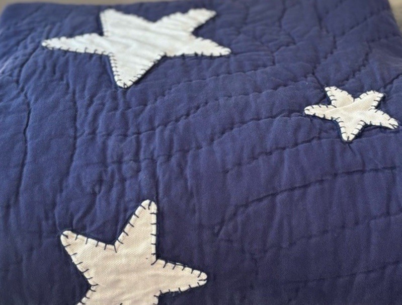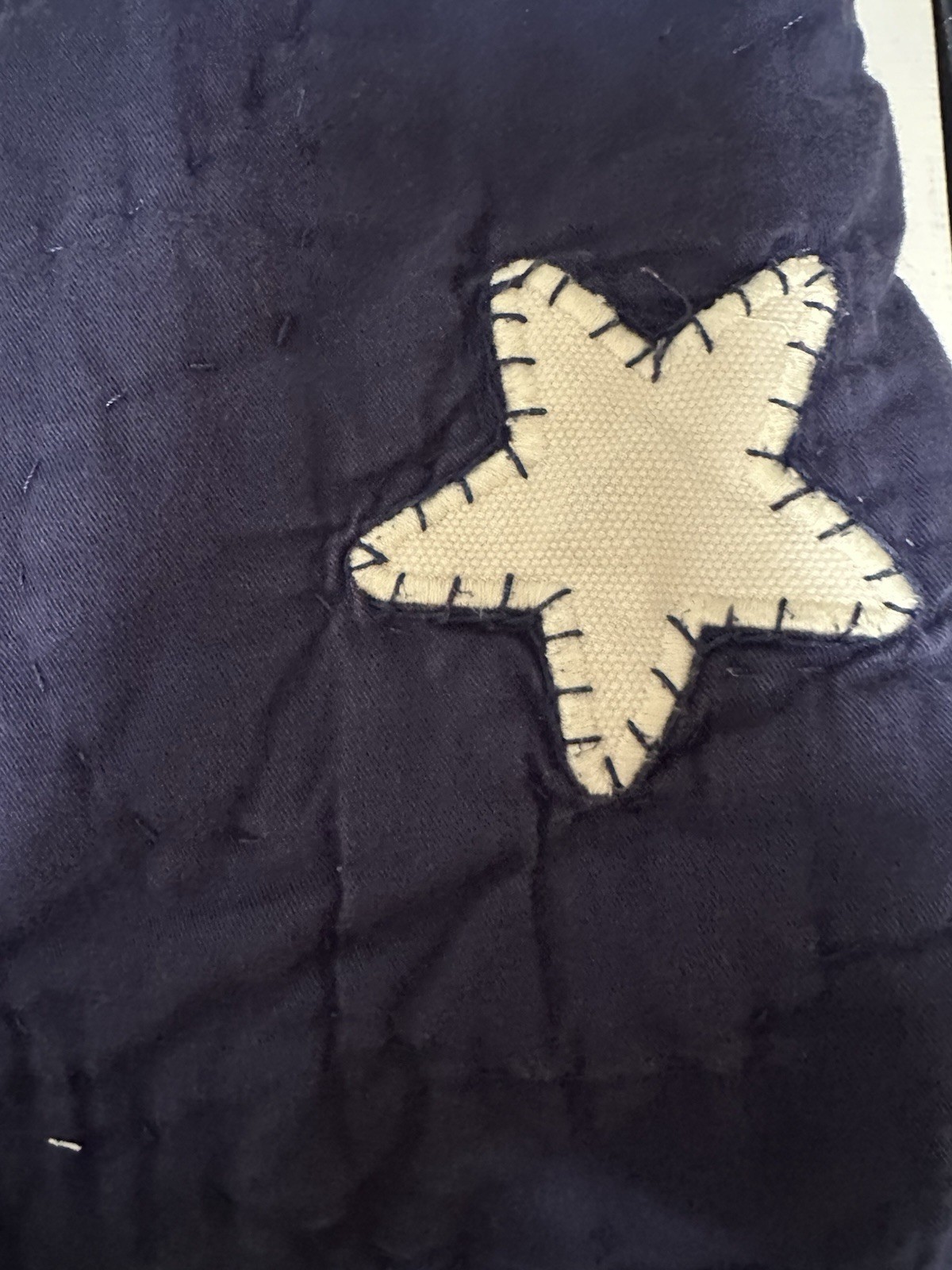 Stitched Applique White Stars with navy stitching On Dark Blue (navy) ground.