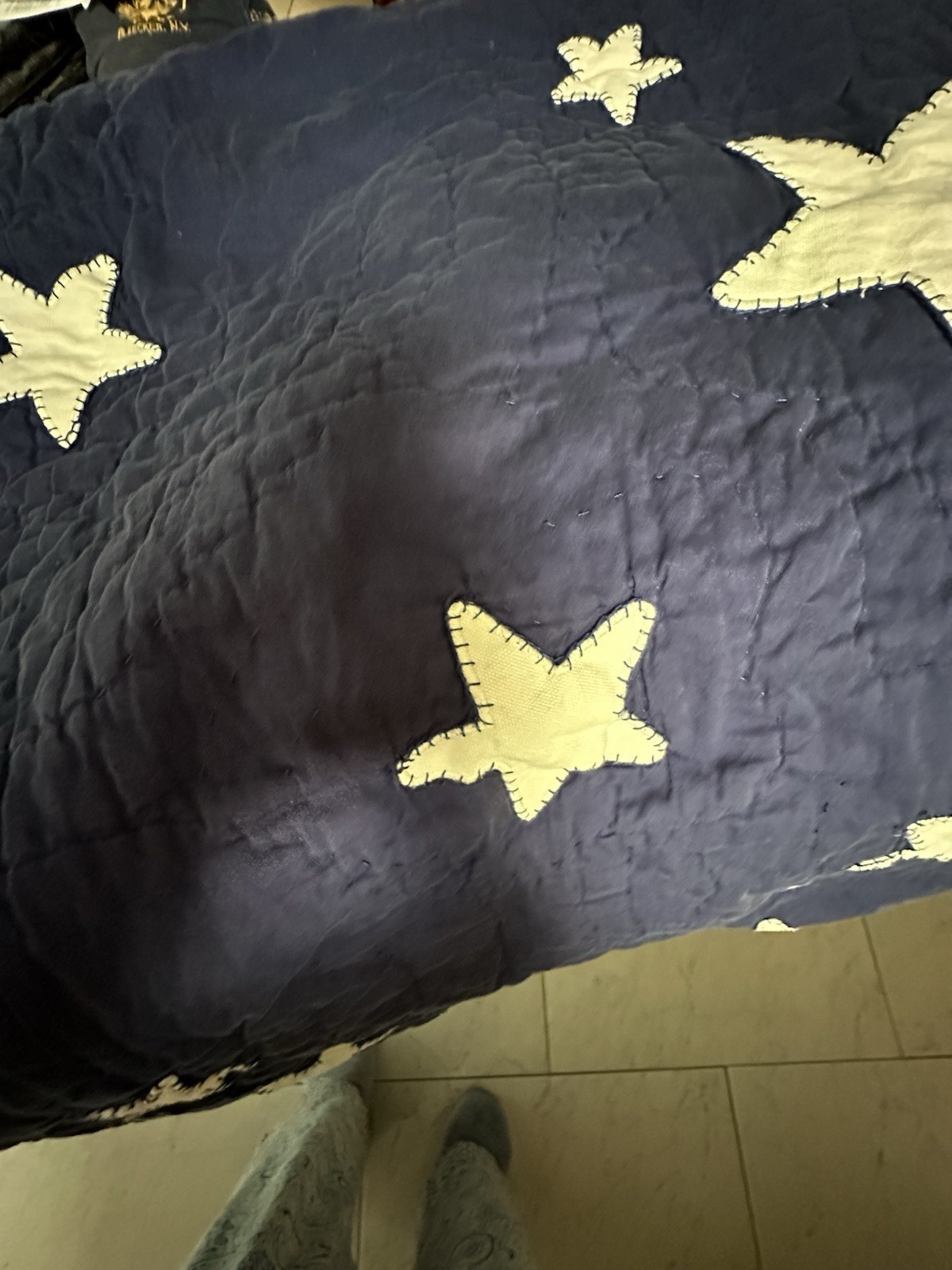 - Pottery Barn Kids Twin Quilt Vintage Star Navy & White Cotton Bedding Pre Owned