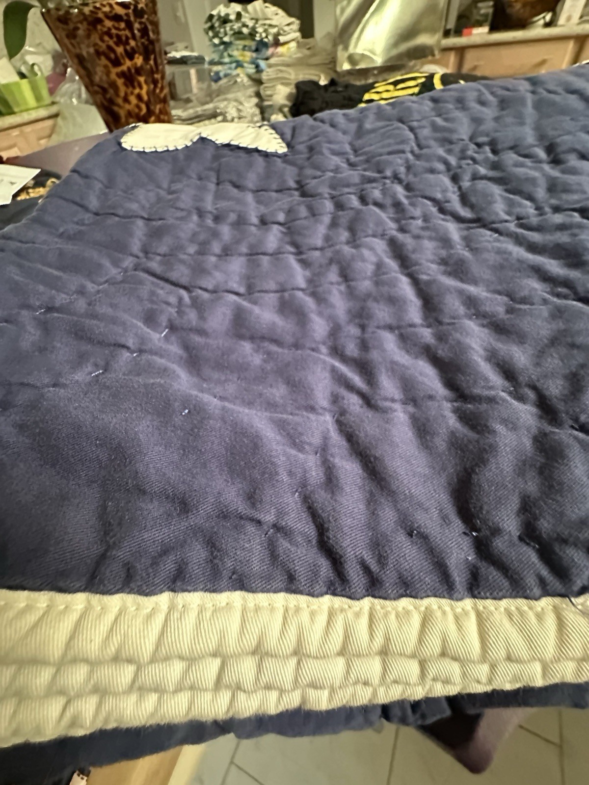 Background Solid Navy back with hand stitching
