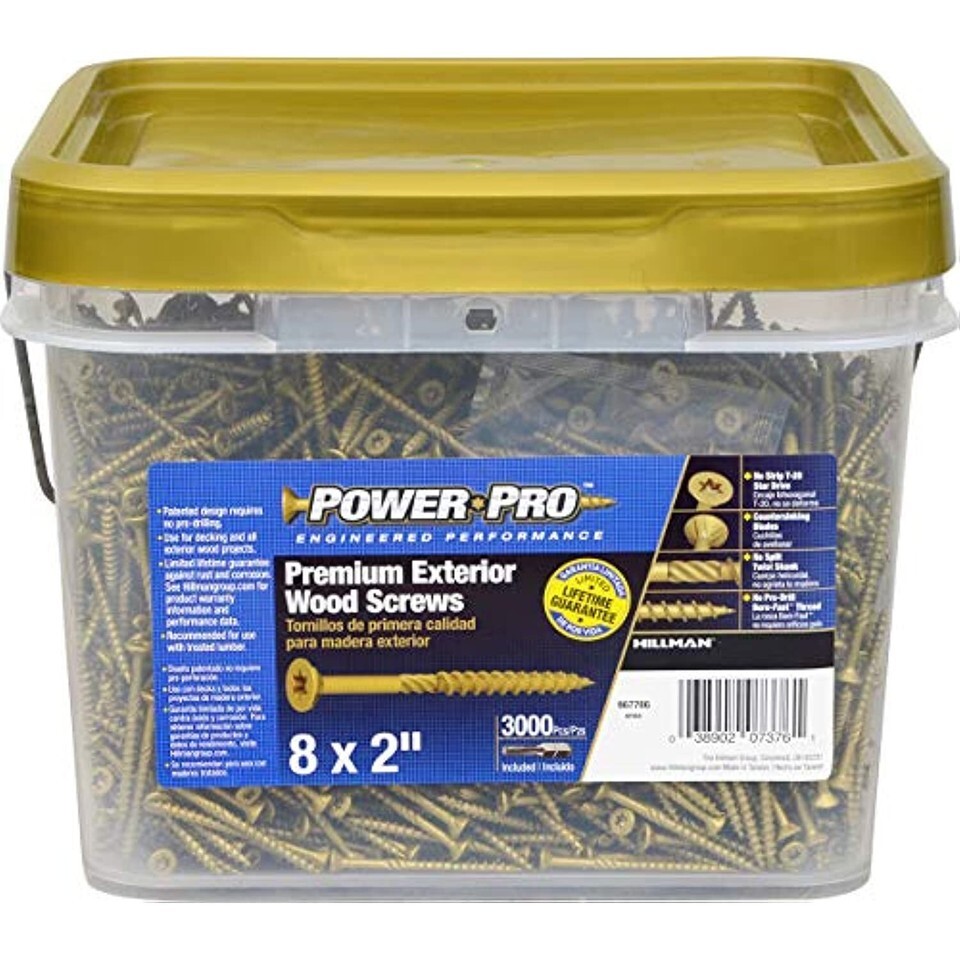 - Power Pro 967786 Wood Screws, #8 x 2", Premium Outdoor Deck Screws, Rust