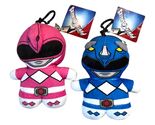 Set of two Power Rangers plush clip-on figures with built-in zip coin pouches. Includes the Pink Ranger and Blue Ranger. Soft plush with attached carabiner clips?great for backpacks, keychains, or small storage.