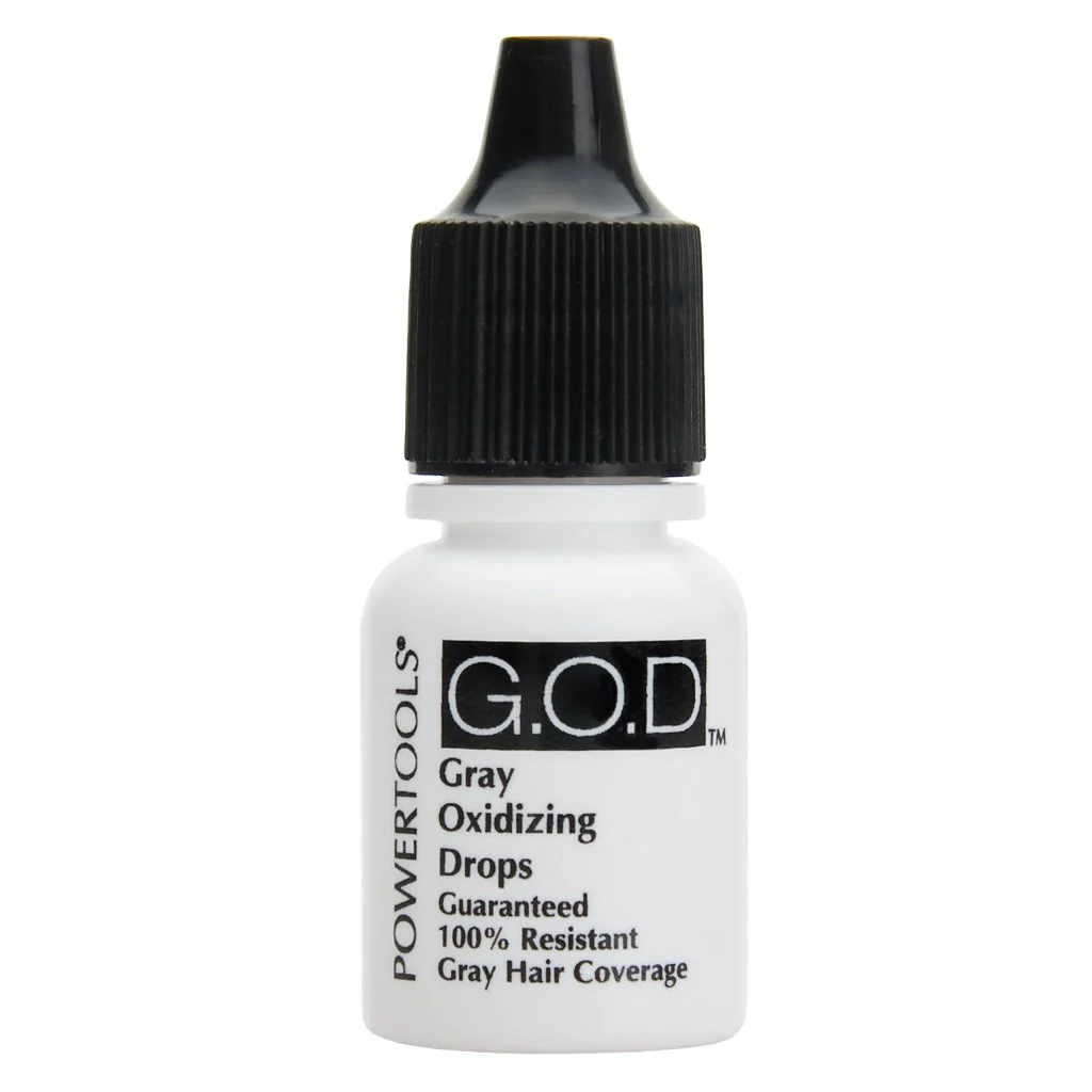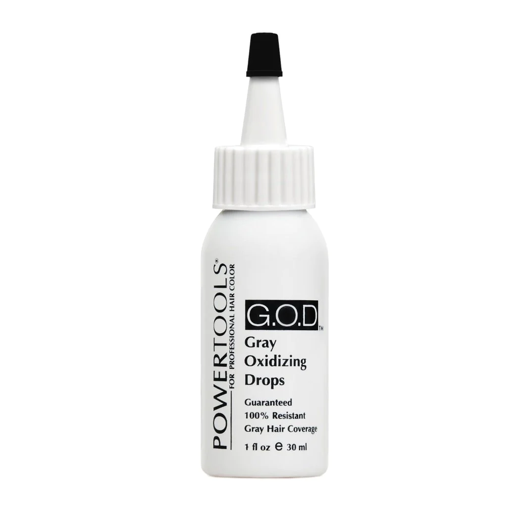 Gray Oxidizing Drops, G.O.D, covers resistant gray completely. G.O.D. can be used with any manufacturer’s permanent, demi semi-permanent hair color; do not use with color stains or temporary colors. As with all Dennis Bernard products, G.O.D is color friendly and can be used with all other POWERTOOL color additives.