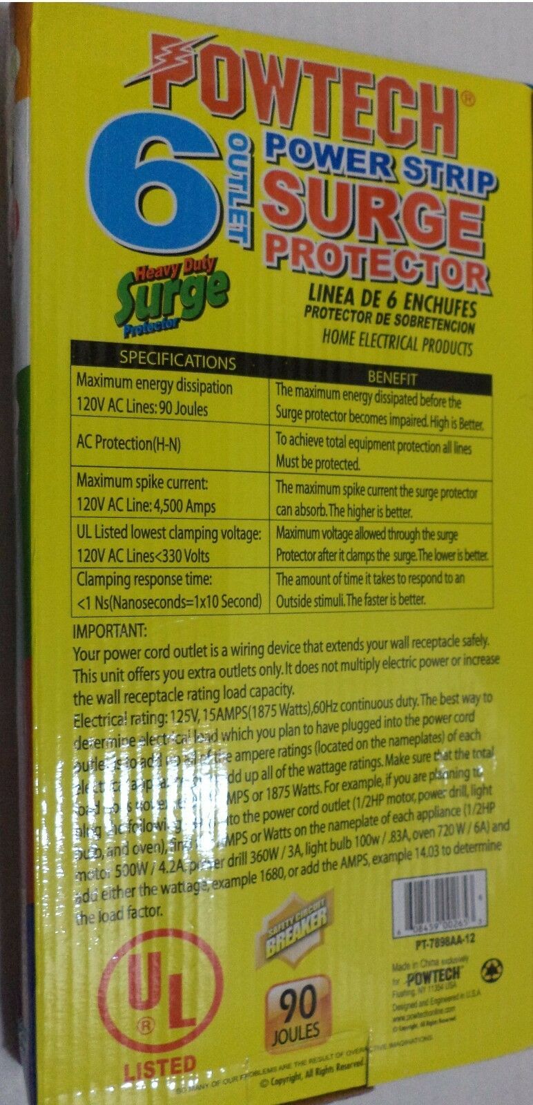 You are Buying a Brand New Powertech 6-Outlet Commercial Power Strip Surge Protector with12-Foot Power Cord
