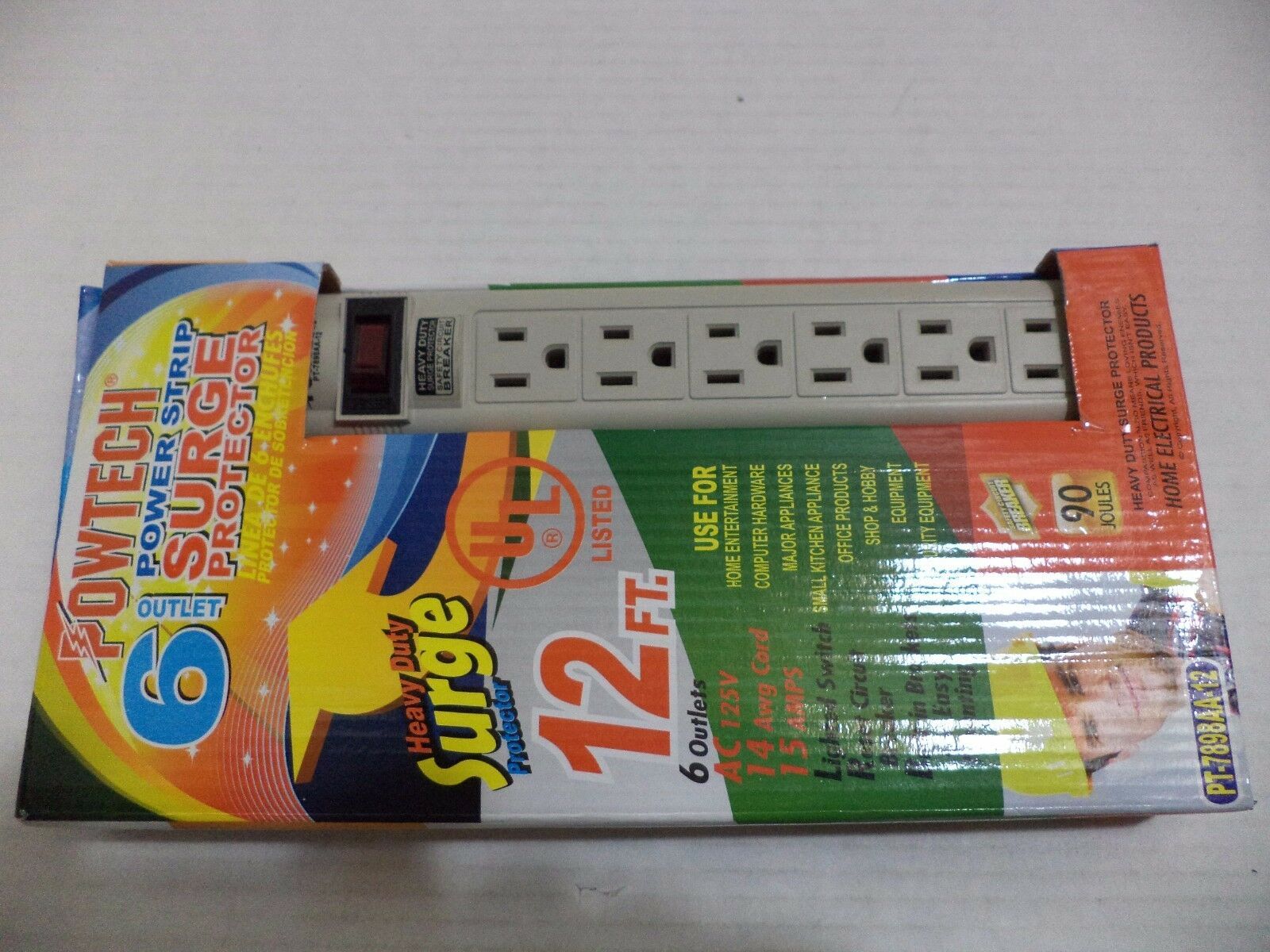 - Powertech 6-Outlet Commercial Power Strip Surge Protector with12-Foot Power Cord