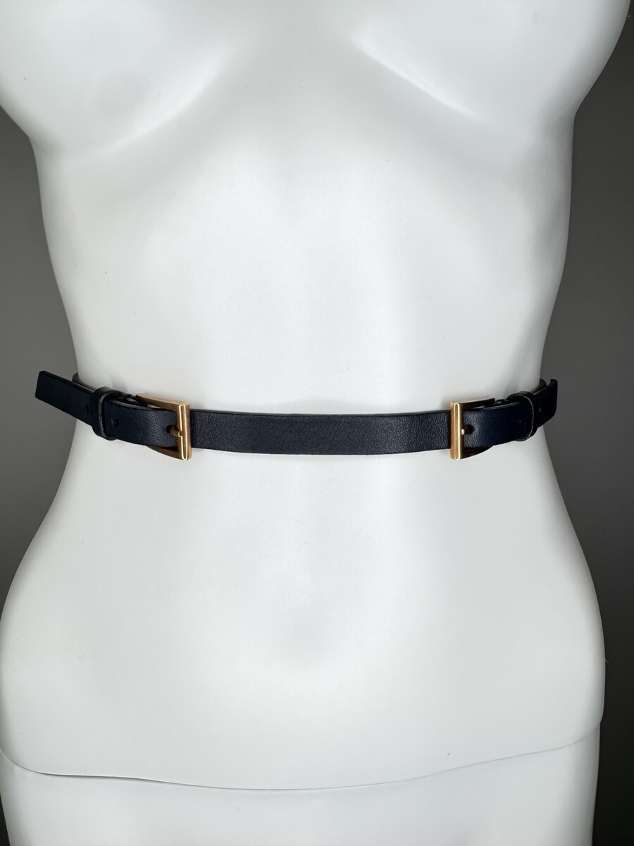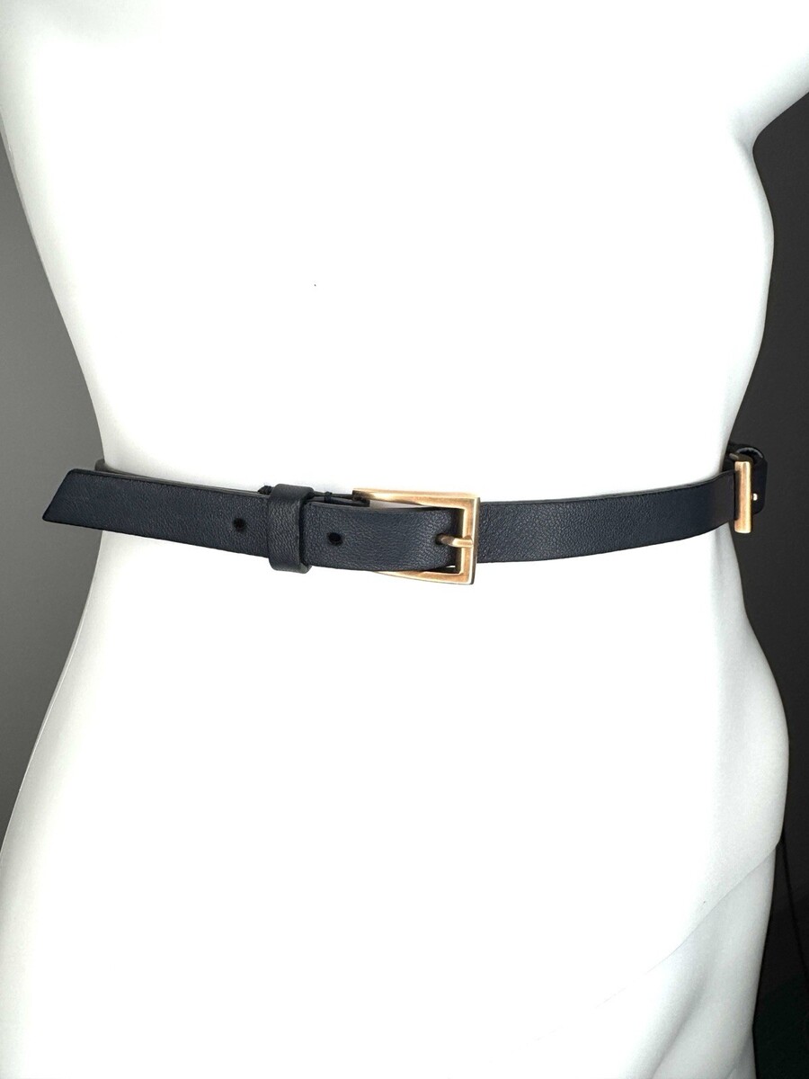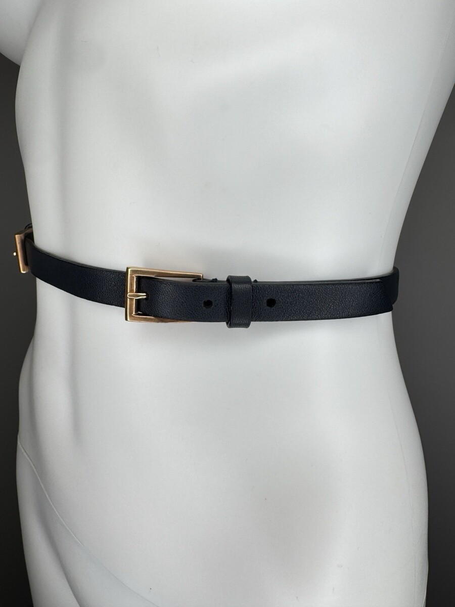 - Prada Skinny Belt Size S M Black Leather Rose Gold Hardware