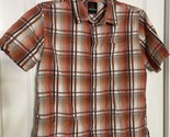 Prana Shirt Men's Size Large Short Sleeve Organic Cotton Button Up Orange Plaid