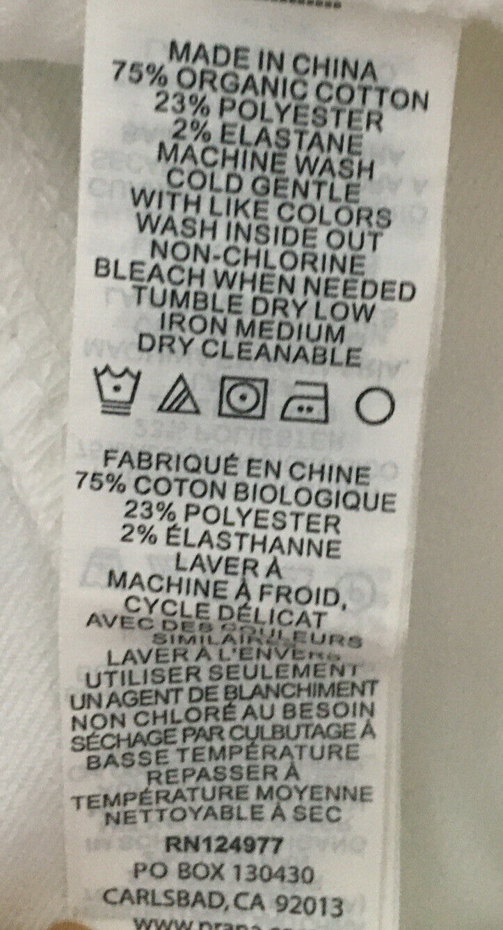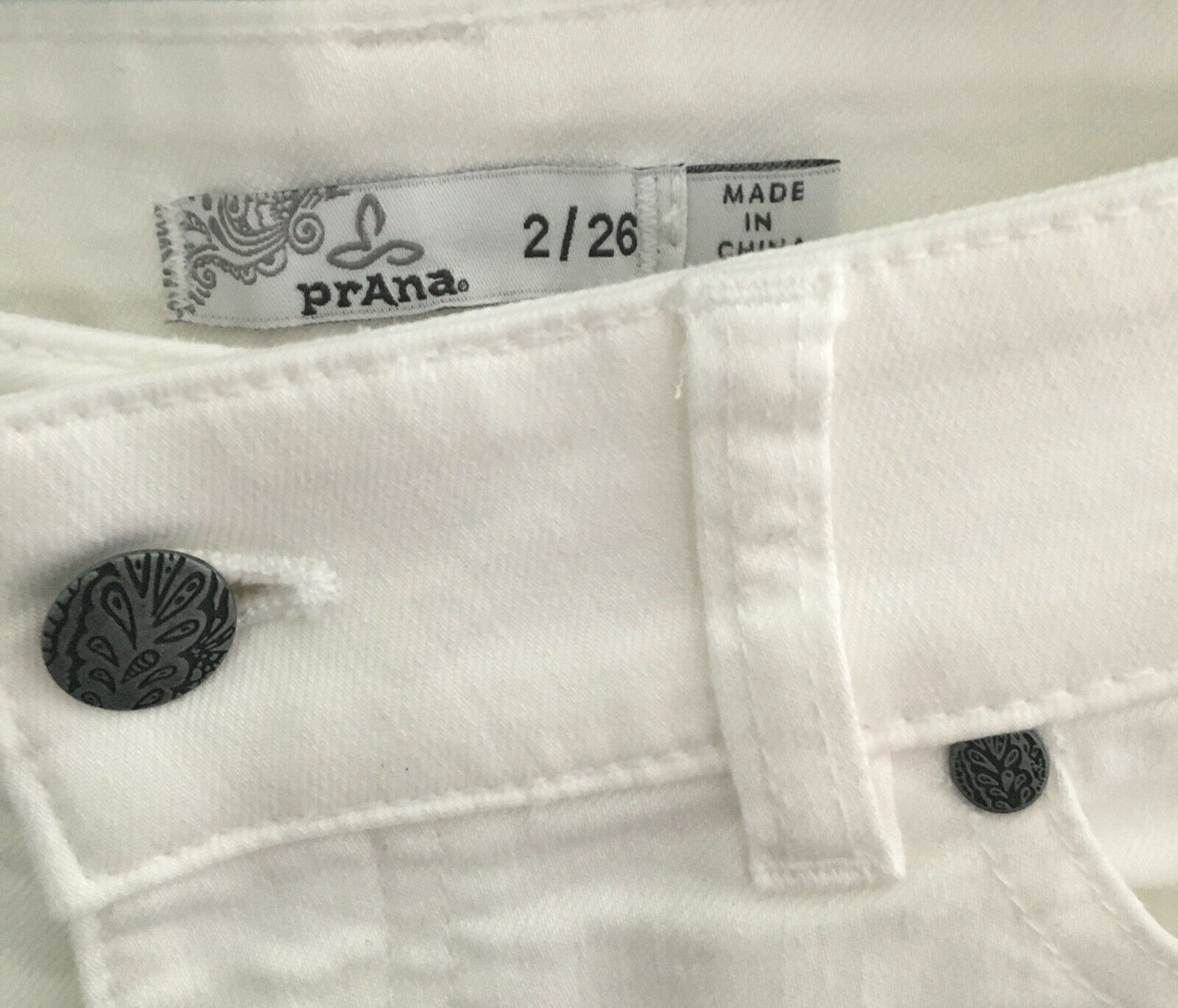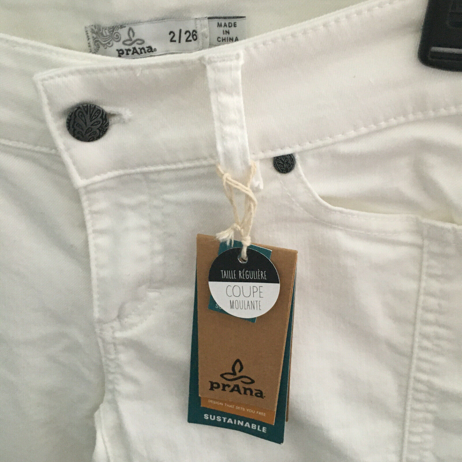 - Prana ( Women’s) Organic Mid-Rise Fitted Size 2/26 White Jeans. NWT.