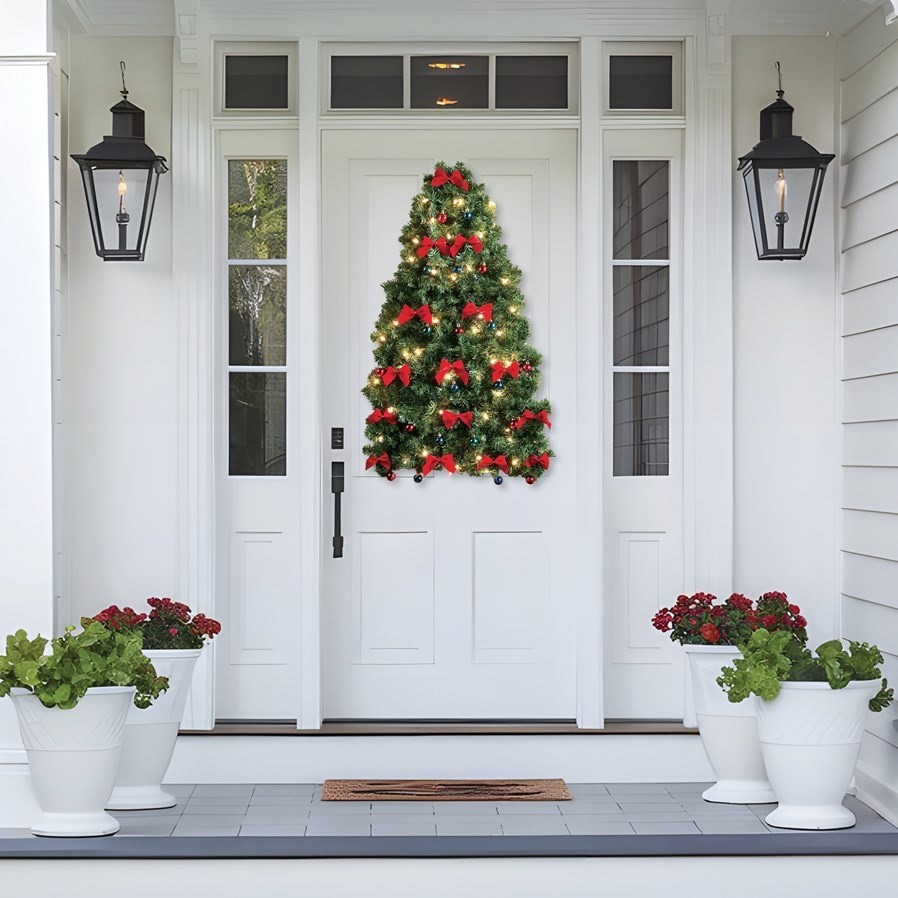 - Pre-Lit Wall Mounted Decorated Christmas Tree Holiday Home Decor Lighted 41"H
