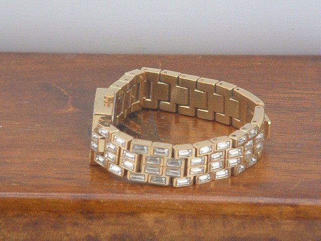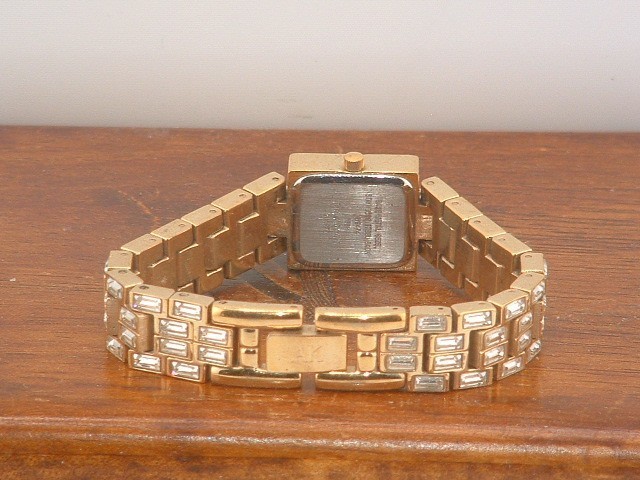 Pre-Owned Women?s Anne Klein Rhinestone 10/3474 Dress Analog Watch-Stainless Steel Back -Stainless Steel Bezel - Stainless Steel Band-Rhinestone-Mother Of Pearl-Dress Style-Quartz Movement-In Good Condition -Signs of Wear- Blemishes - Gold Color -Fits up to 5 1/2 inch Wrist-Works !!!