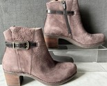 Dansko Hartley women's size 39/8.5-9 ankle boot. Brown nubuck leather upper with side zipper and accent buckle strap. Cushioned, leather-wrapped footbed; thermoplastic rubber outsole and leather stack heel. **Nubuck is treated with 3M Scotchgard protector to provide stain resistance. Excellent condition.