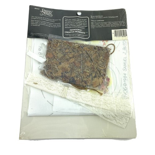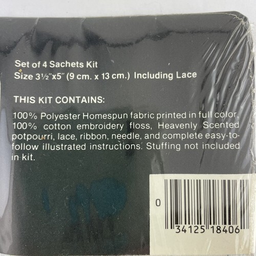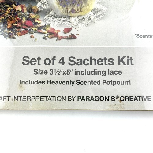 Set of 4 sachet pillow to make. While sealed in the package, the Heavenly scent potpourri is from 1984, so it may not be as fragrant as it was when the kit was made and you may wish to replace it with your favorite potpourri scent.