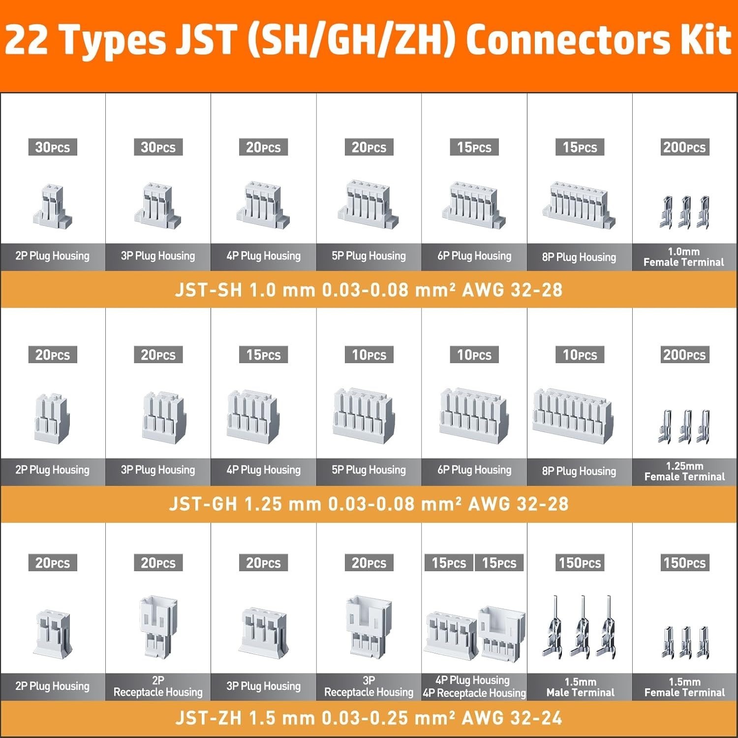 Features 22 types of JST-SH 1.0mm, GH 1.25mm, and ZH 1.5mm connectors.