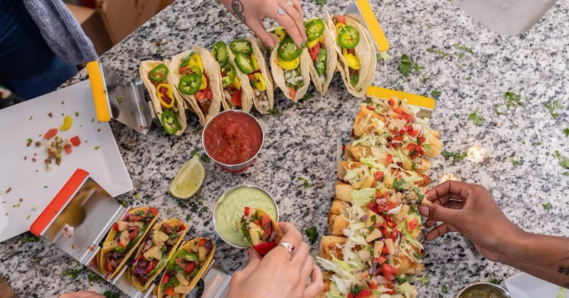 - Premium 316 Stainless Steel Taco Holder with Silicone Handles, 8 Tacos, 3 Sauces