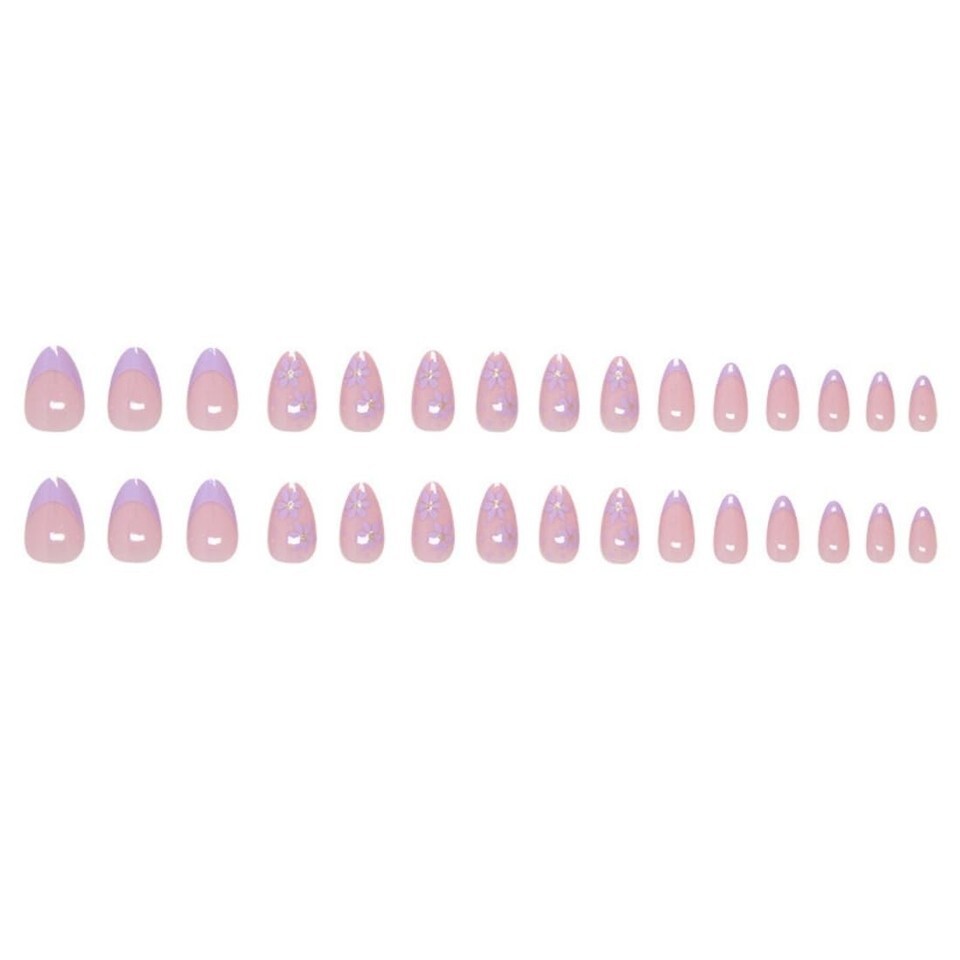 - Press On Nails Purple Flower Design Fake Nail Art Manicure 30 Pcs