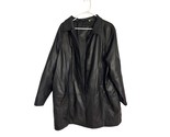 Preston York women?s overcoat in size 1X. Made in China with a genuine leather shell and fully lined in 100% polyester. Classic black color with a longline design, featuring 29? sleeves, 34? length, and 26? pit-to-pit for a roomy, comfortable fit. A timeless plus-size leather coat perfect for workwear, casual chic outfits, or outerwear layering. Pre-owned and in good condition.