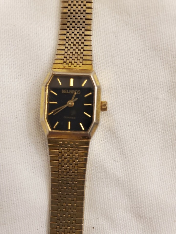 - PREVIOUSLY OWNED LADIES HELSBROS GOLD TONE ANALOG QUARTZ WATCH