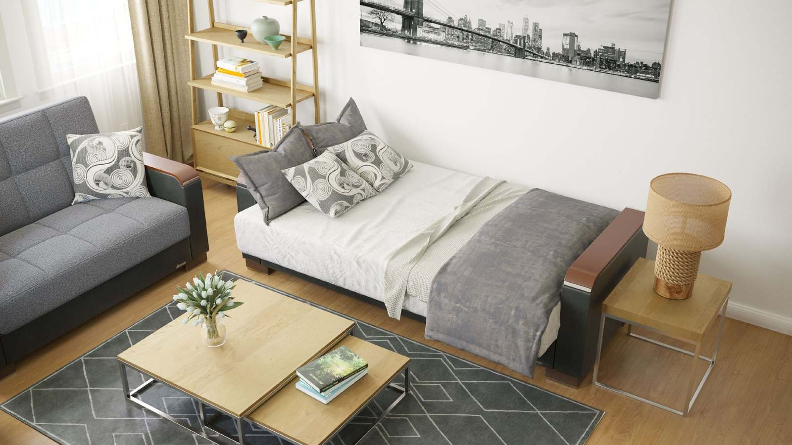 SUITABLE FOR SMALLER SPACES: The perfect size for functionality in a studio apartment, dorm room, and even in the living room of a home! Enjoy the practicality of a full sized Wood Trimmed Loveseat without dealing with any additional unnecessary bulk. Utilize our click-click technology in order to turn this Wood Trimmed Loveseat into a bed with one swift move, thus changing your living room into a guest room. *REFER TO THE IMAGES FOR DETAILED ACCURATE Wood Trimmed Loveseat MEASUREMENTS*