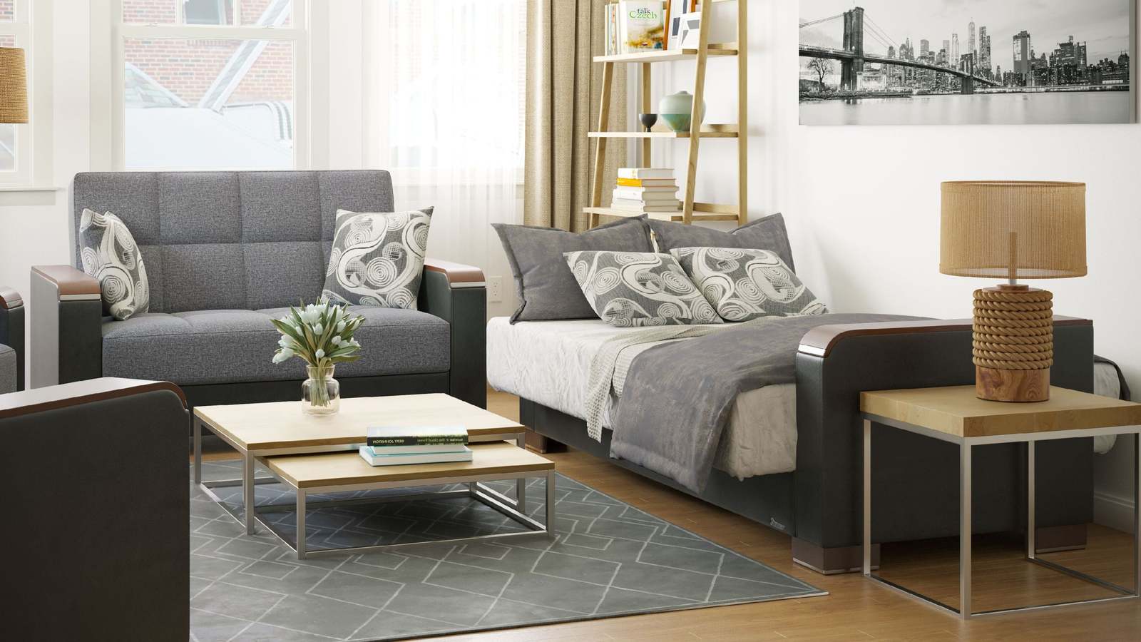 - PrimeNest ZenAero X: Grey/Black Convertible Loveseat w/Storage
