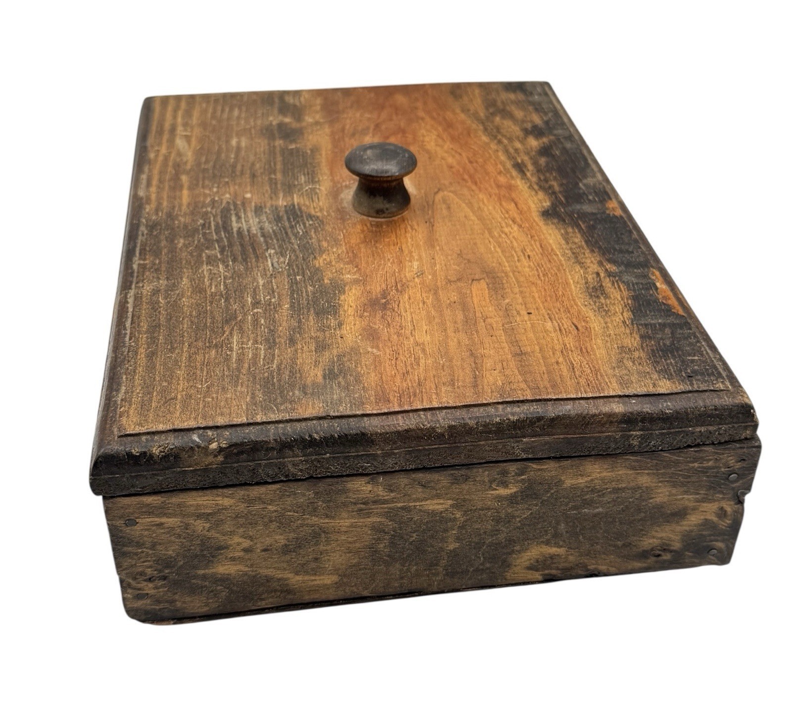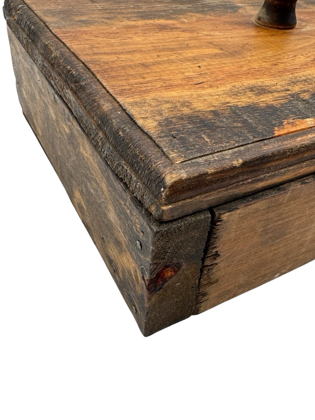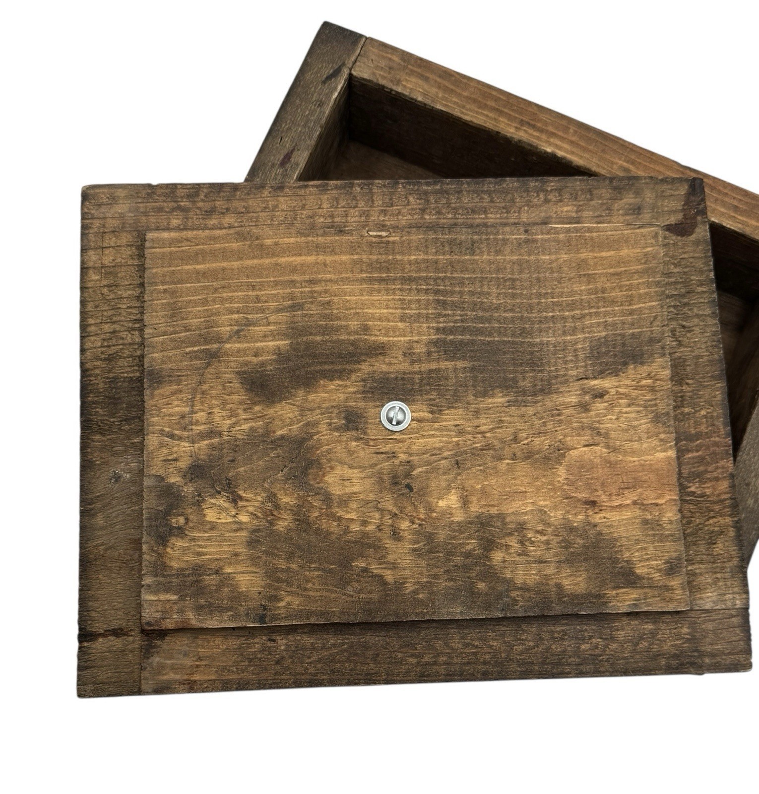 - Primitive Wooden Box with Lid Handmade 9" x 7" Rustic Basic Weathered Wood Vtg